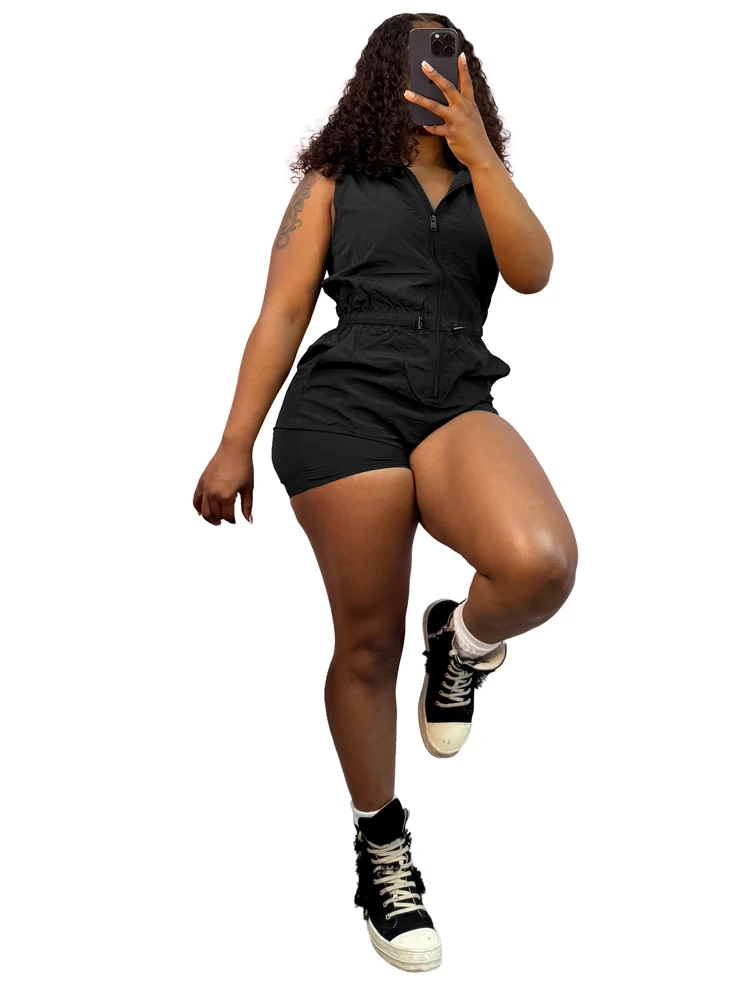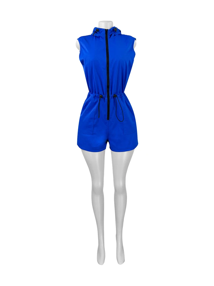 Hooded Women Clothes Zipper Sleeveless Drawstring Patchwork Jumpsuits 2025 New Summer Female Streetwear Bodycon Overalls Rompers